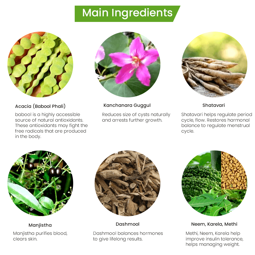 - Regulates delayed periods & Controls Cysts